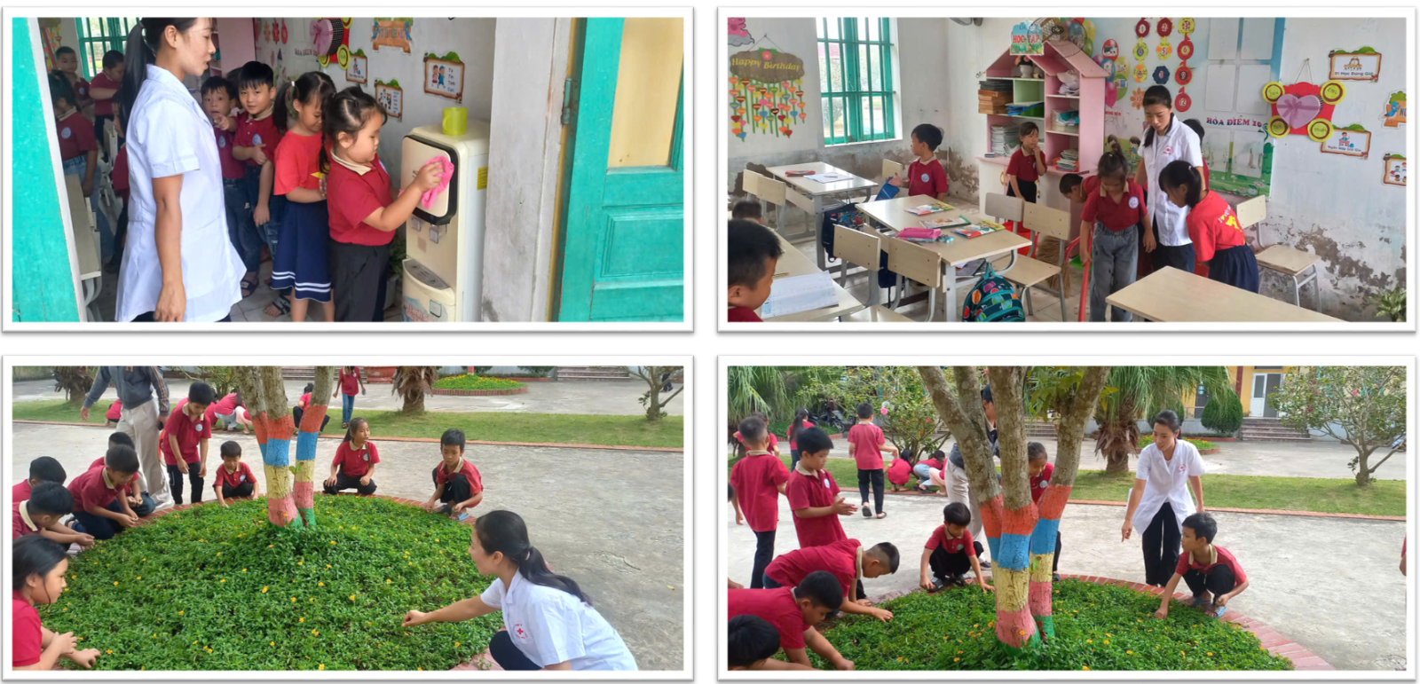 – Giữ gìn vệ sinh lớp học, bàn ghế, khu vực nước uống, bỏ rác đúng nơi quy định.